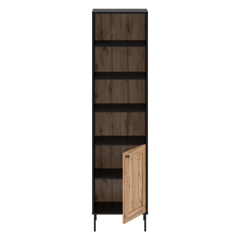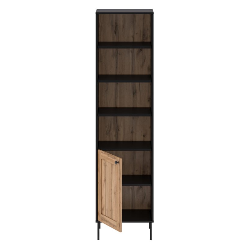 - Transform your living space into an organized haven of style and functionality with our Versatile Tall Bookcase. This exceptional piece offers a harmonious blend of open storage and concealed compartments, providing a versatile solution that complements your décor while catering to your storage needs.