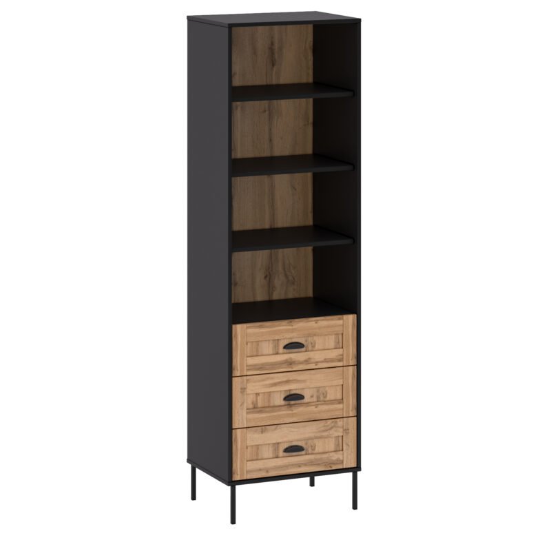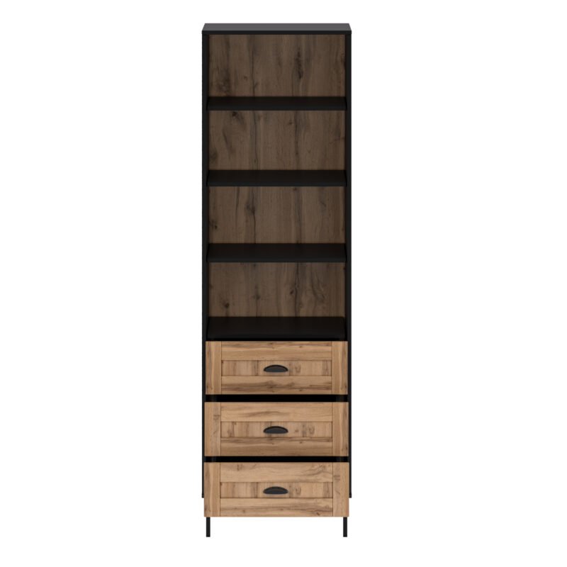 - Concealed Drawers: Beyond its open shelves, the bookcase features three drawers thoughtfully integrated into its design. These drawers offer a discreet storage solution for items you prefer to keep hidden, maintaining a clutter-free appearance.