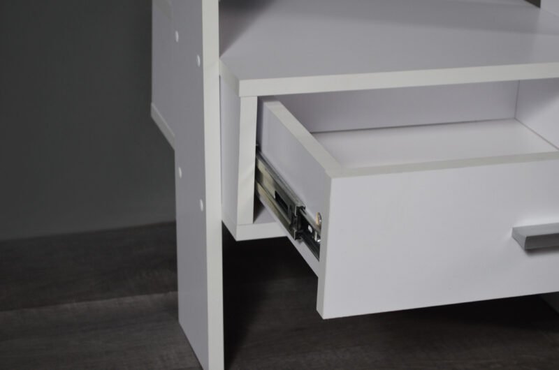 - Functional Drawer: The small drawer nestled within the bookshelf offers a discreet storage solution for items you wish to keep tucked away. Whether it’s small accessories, notes, or essentials, the drawer adds an extra layer of organization.