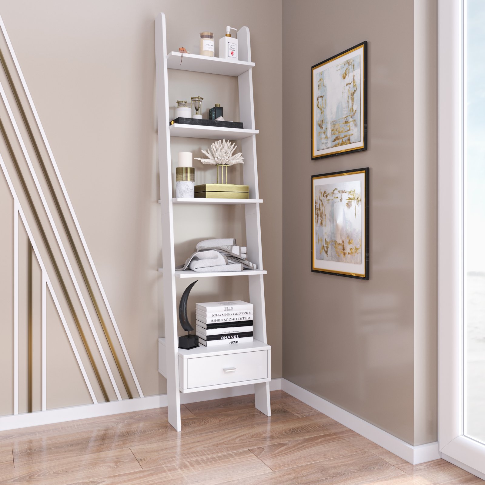 - Contemporary Ladder Design: The bookshelf’s ladder-inspired structure adds a contemporary edge to your room. Its sleek lines and pristine white finish create an immediate focal point, while the ladder form brings a unique visual element to your space.