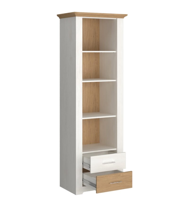 This bookcase is an elegant solution for all your storage needs. 4 adjustable shelves provide plenty of space to store your books, family pictures, and decorative items. The spacious shelves provide plenty of room for storage. The simple design and soft edges will fit with all décor, turning any room into a library. This bookcase provides stylish storage options for your bedroom, entryway, living room, or anywhere extra organization is needed. In addition to open shelves, this bookcase also has 2 bottom drawers where you can hide things that should not be in sight. Enhance your home’s organization and style with our Four-Compartment Bookcase with Two Drawers, where practicality meets elegance. Whether you’re an avid reader, a collector, or simply seeking a stylish storage solution, this bookcase is the perfect choice to elevate your interior decor and keep your space organized.