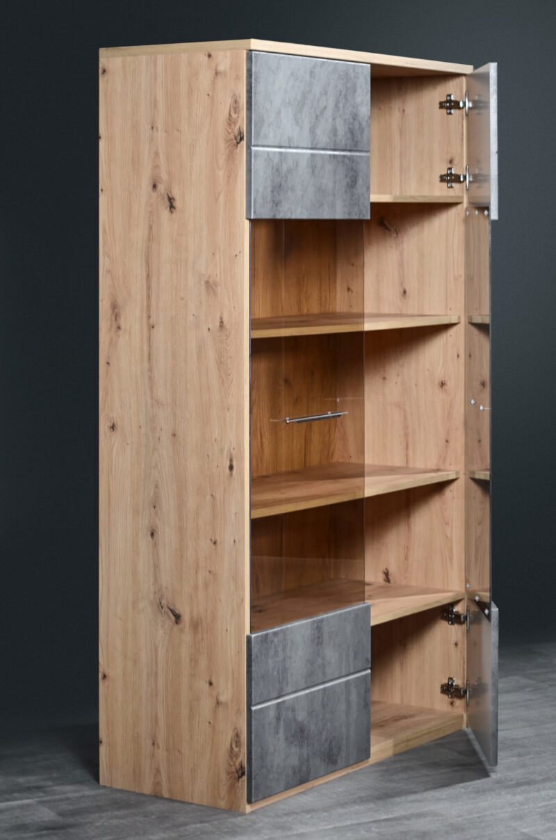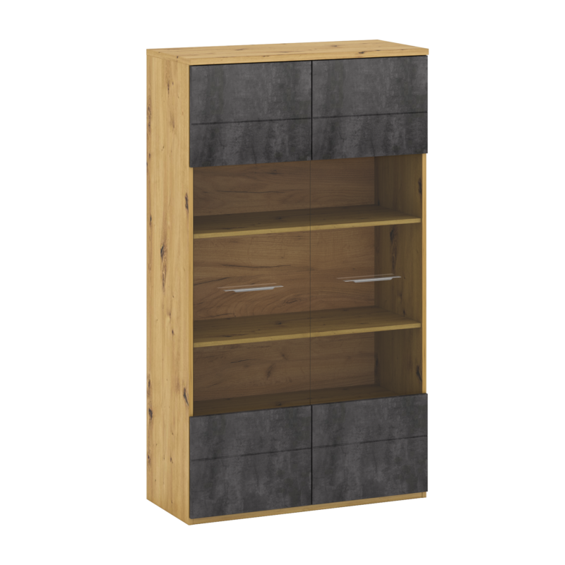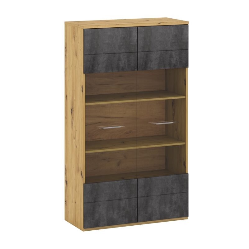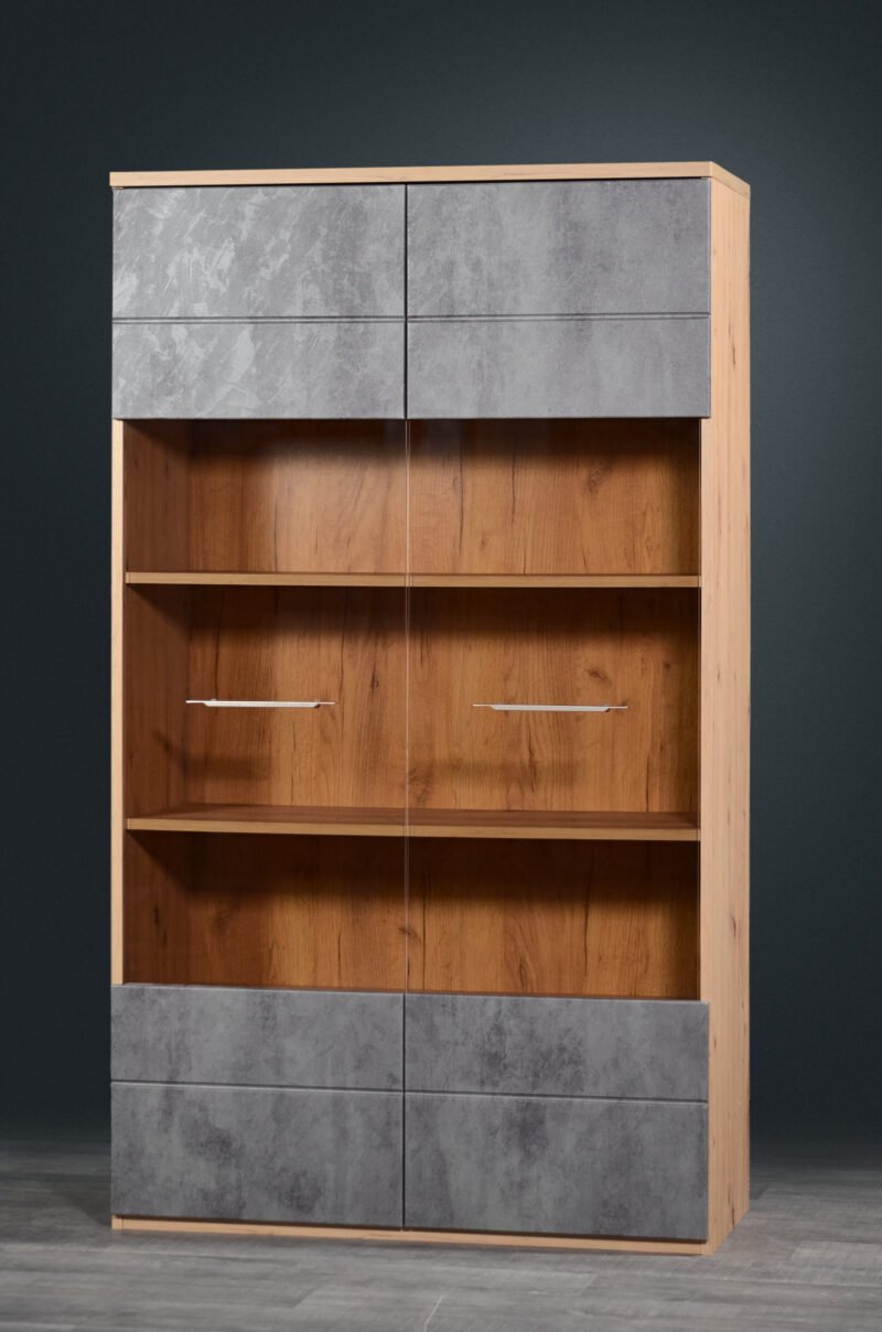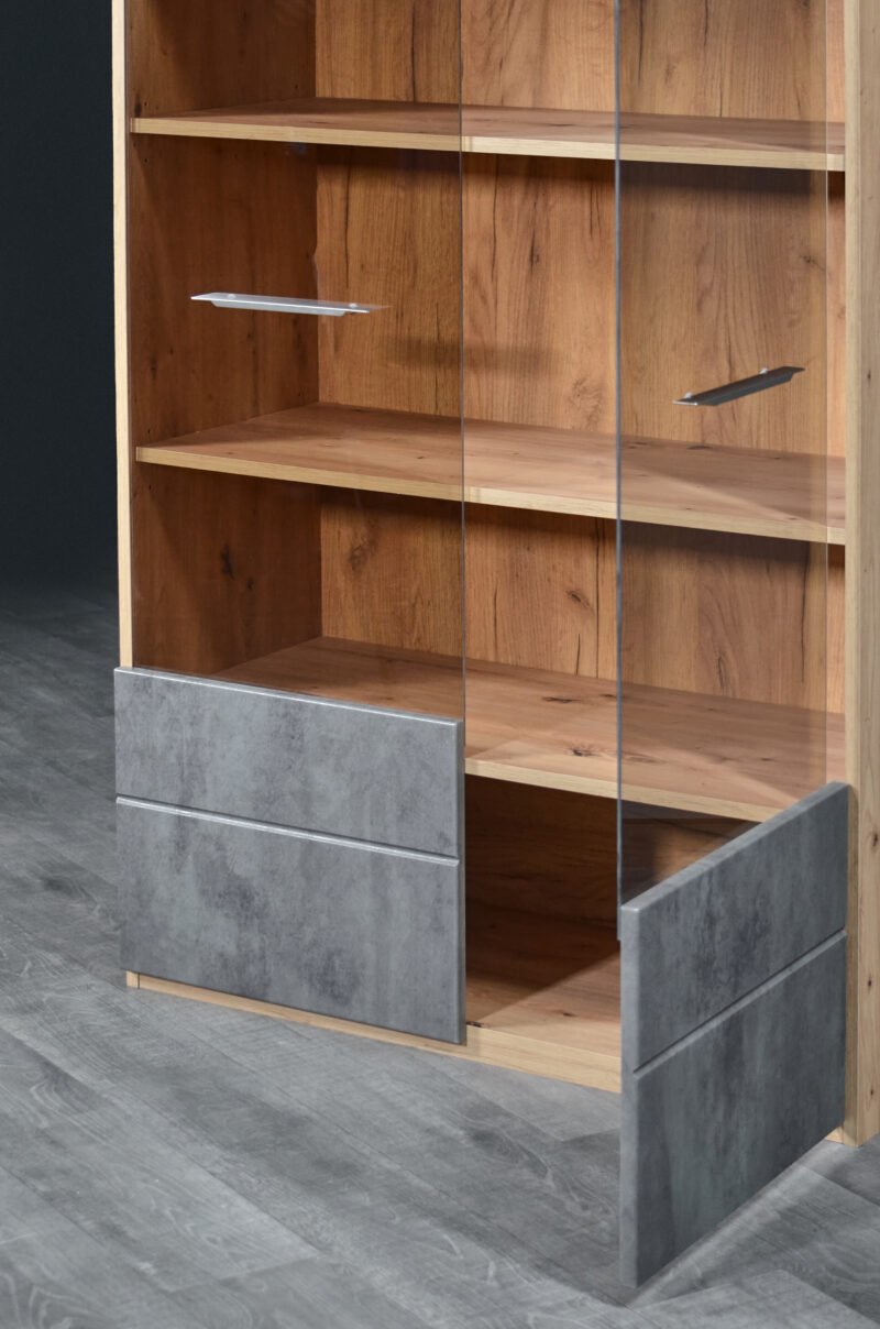 - This Grand Two-Door Showcase with Elegant Glass Accents beautifully balances aesthetics with utility. It is more than just a storage solution; it’s a decorative centerpiece that allows you to showcase your style and taste. Elevate your living space with this exquisite showcase and experience the perfect blend of beauty and utility in your home.