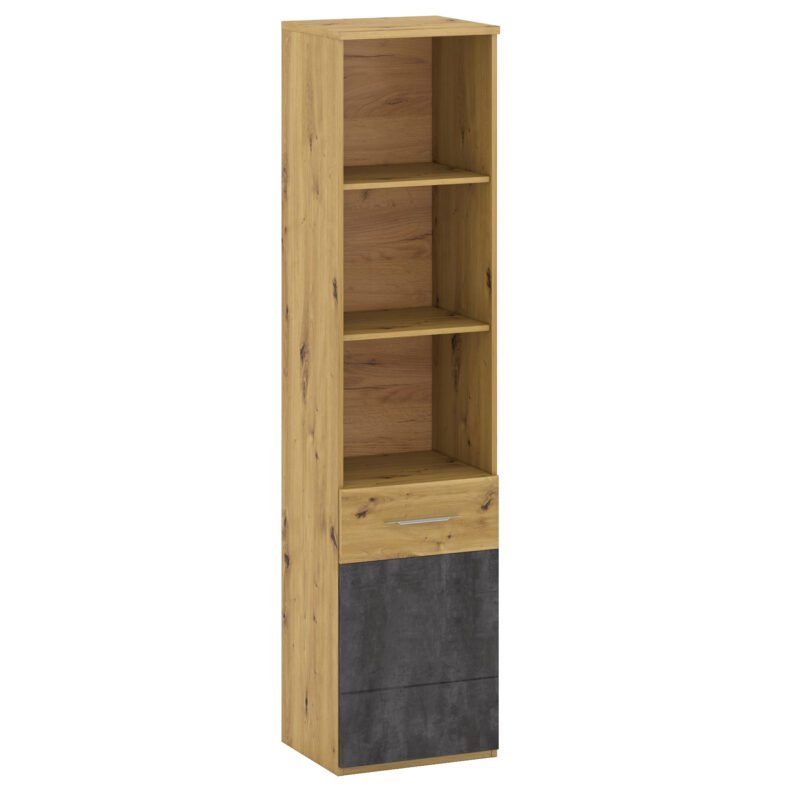 - Closed Cabinet: At the bottom of the bookcase, you’ll find a closed cabinet with a door that conceals a single shelf inside. This cabinet is perfect for storing items you prefer to keep hidden, such as paperwork, office supplies, or personal belongings.
