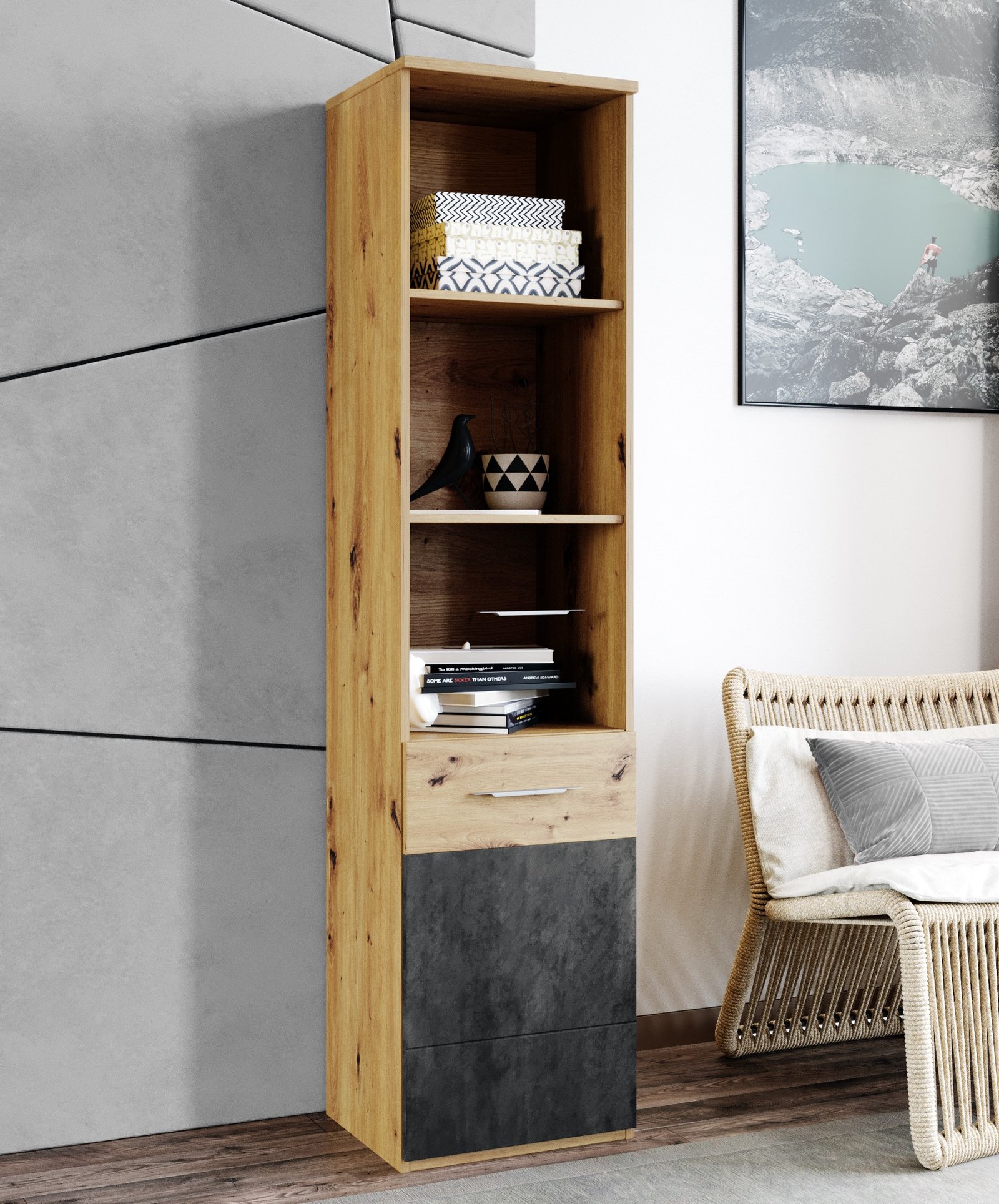 - Open Shelving: The bookcase features an open top section with two spacious shelves. These shelves provide ample space to display your favorite books, decorative items, and personal mementos, allowing you to create a personalized and inviting atmosphere.