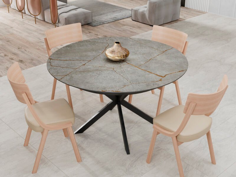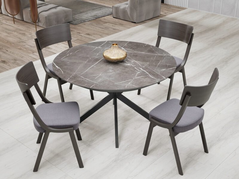 • Dynamic Design: The round silhouette of this dining table exudes a sense of unity, encouraging intimate conversations among your guests. The timeless design is elevated by a seamless mechanism that adds a touch of modern innovation.