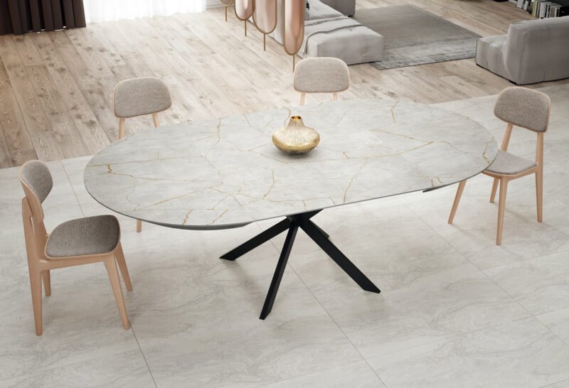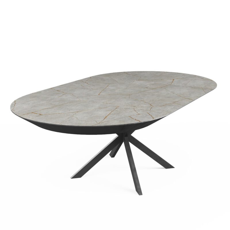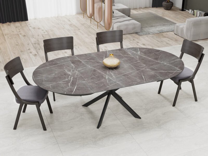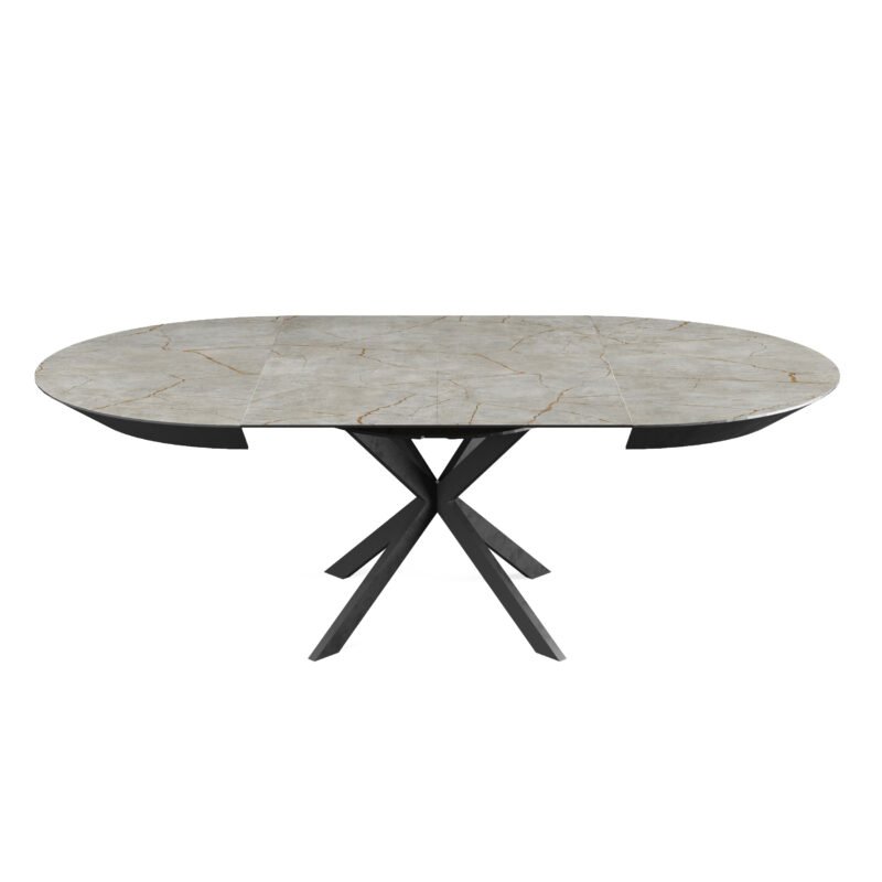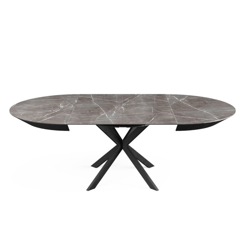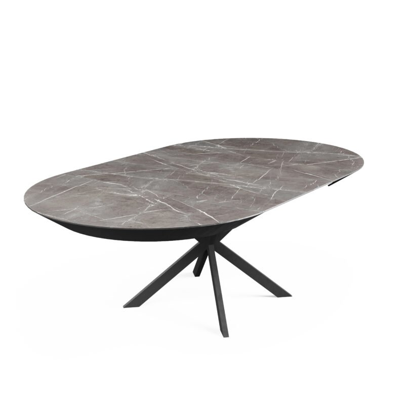 • Self-Storing Leaf: Prepare to be amazed by the ingenuity of the self-storing leaf system. Ingeniously concealed within the table itself, the leaf effortlessly extends the table’s surface by a substantial 230 cm (90 inches). Gone are the days of searching for misplaced leaves or struggling with clunky extensions.