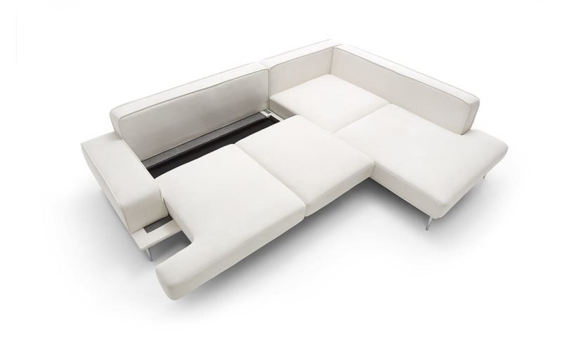 This convertible Livio Sofa is the perfect addition to any office or living room ensemble. Fitted with durable, light-colored upholstery, this section brings a touch of texture to your decor, while chrome metal legs complete this detail, invoking a contemporary touch.