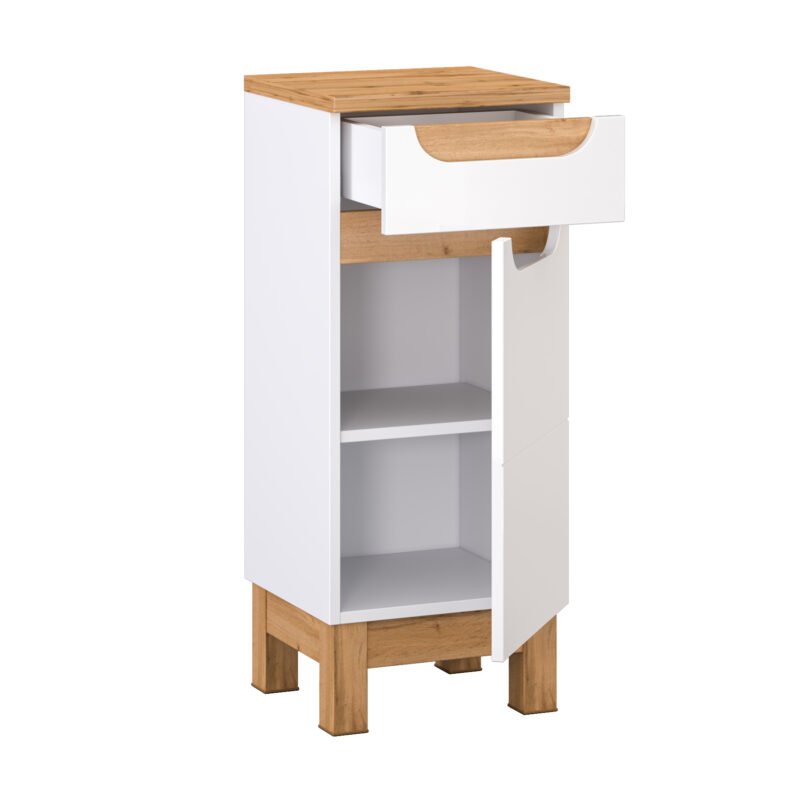 Introducing our Compact Cabinet with Drawer and Closed Storage—a stylish and versatile addition to your home decor. This compact cabinet offers a perfect balance of open and concealed storage, combining a convenient top drawer with a closed compartment featuring a single interior shelf. Compact Cabinet with Drawer and Closed Storage is designed to provide both form and function in a compact footprint. It serves as an attractive piece of furniture while offering versatile storage options to help you declutter and organize your belongings with ease. Crafted with meticulous attention to detail, this cabinet invites you to personalize your living space while maintaining a neat and tidy appearance.