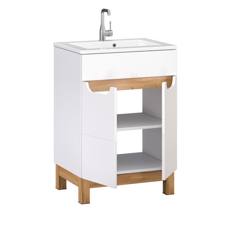 - Two Cabinet Doors: The cabinet is equipped with two doors that open outward, providing easy access to the interior. These doors help conceal your stored items, keeping the area under your sink looking tidy and clutter-free.