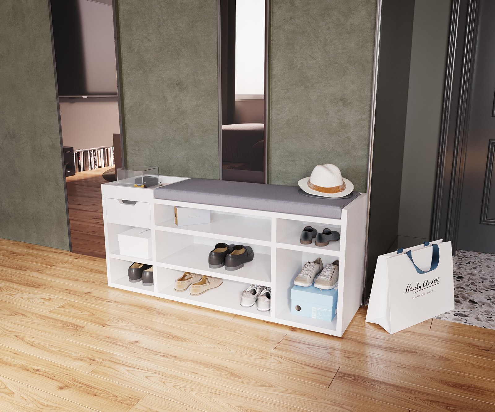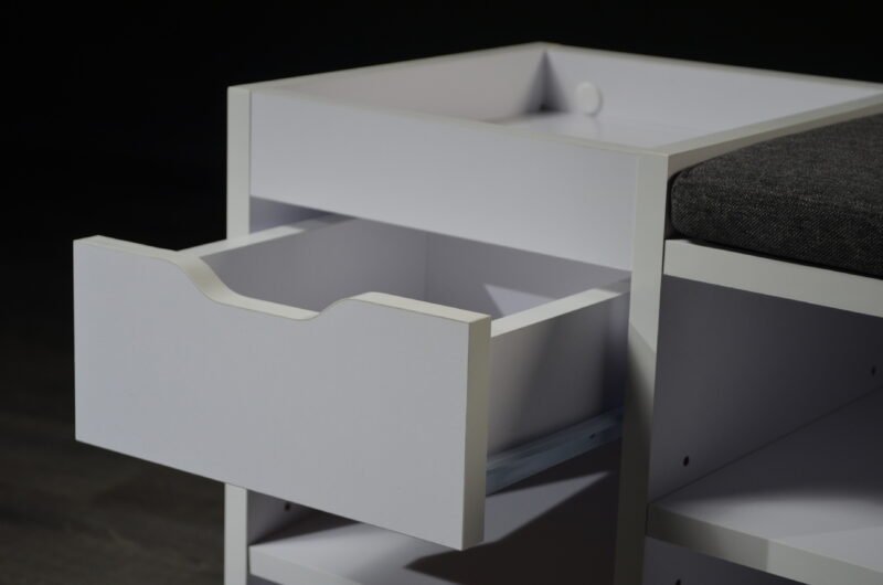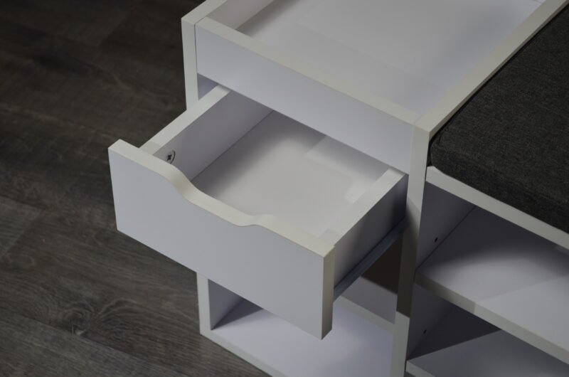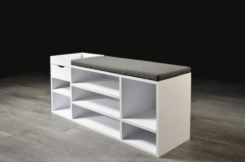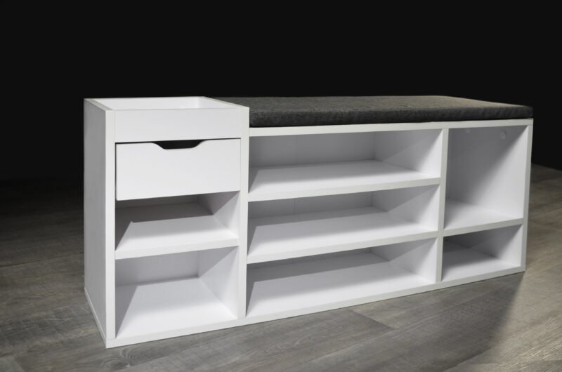 Experience the perfect fusion of style, organization, and comfort with our Multi-Compartment Shoe Cabinet with Drawer and Padded Seat. Designed to redefine your entryway experience, this cabinet transcends mere storage and becomes an integral part of your daily routine. The seven open compartments cater to various shoe styles, offering a dedicated space for each pair. From sandals to sneakers, each shoe finds its place, ensuring a clutter-free entryway. The integrated drawer provides a convenient spot for essentials, adding an extra layer of functionality. But this shoe cabinet is more than just storage; it’s also a cozy seating solution. The padded top transforms shoe transitions into a comfortable experience. No more struggling to balance or searching for a seat; now you have a designated spot for shoe-related activities. With its sleek design and neutral tones, the shoe cabinet effortlessly complements your interior style. Whether you place it in the entryway, hallway, or mudroom, it enhances both the visual appeal and practicality of the space. Elevate your daily routines and create an organized and inviting entryway with the Multi-Compartment Shoe Cabinet with Drawer and Padded Seat. Experience the convenience of dedicated shoe storage, the ease of a padded seat, and the satisfaction of a clutter-free environment all in one thoughtfully designed piece.